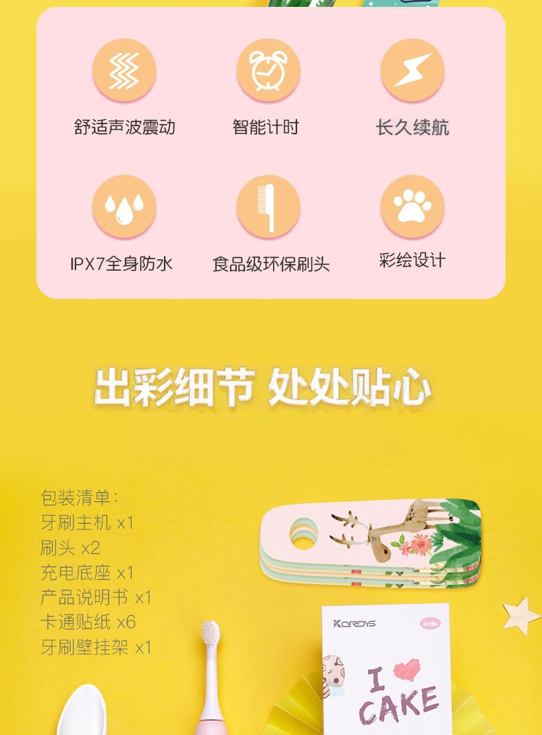 科蒂斯(KEDISI)科蒂斯儿童电动牙刷u型充电式2-3-7岁软毛男女小学生宝宝自动牙刷 沁蓝(标准刷头+环绕刷头+U型刷头2-12岁)