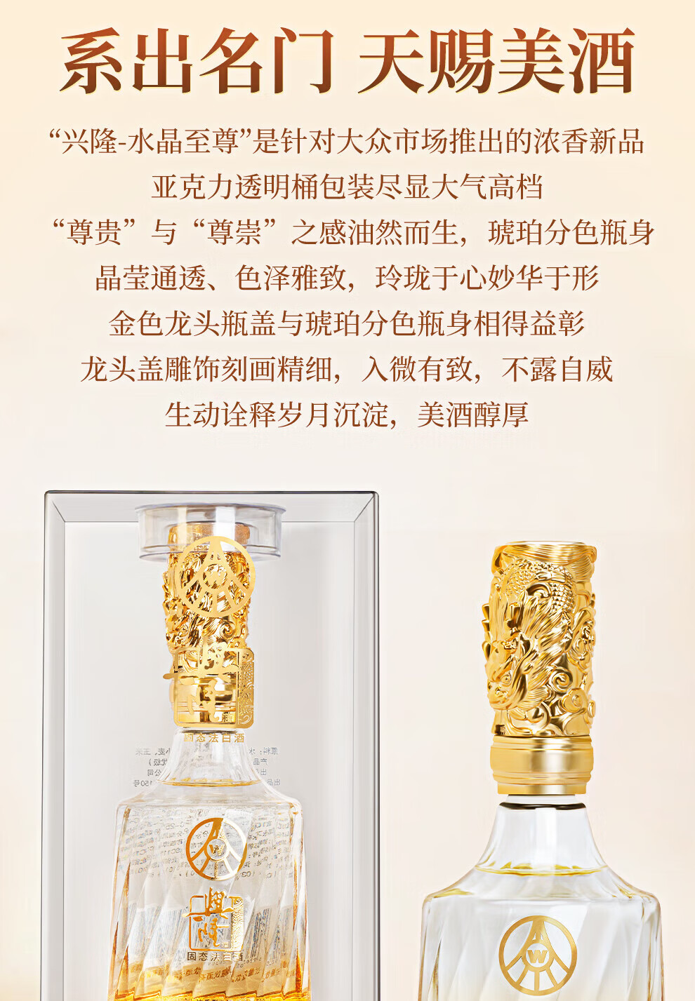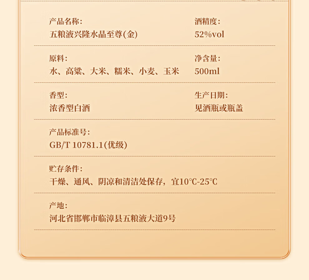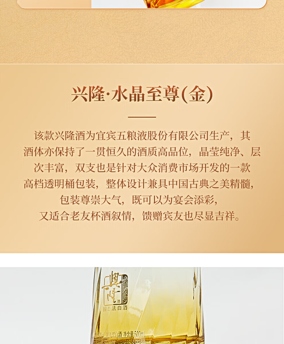 五粮液股份52度兴隆水晶至尊金浓香型高度白酒整箱送礼宴请婚宴喜酒 52度 500mL 6瓶