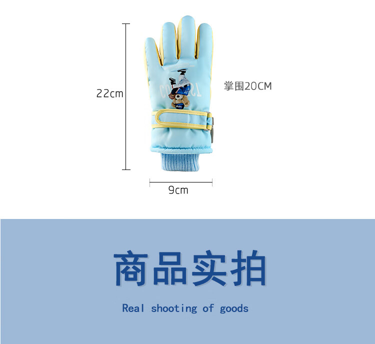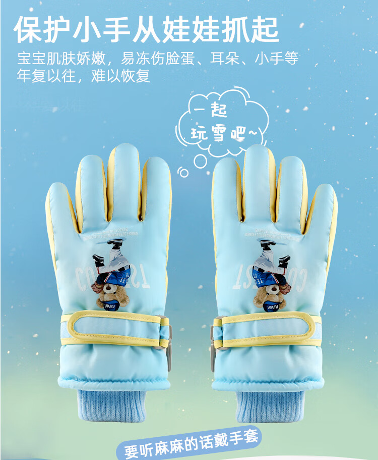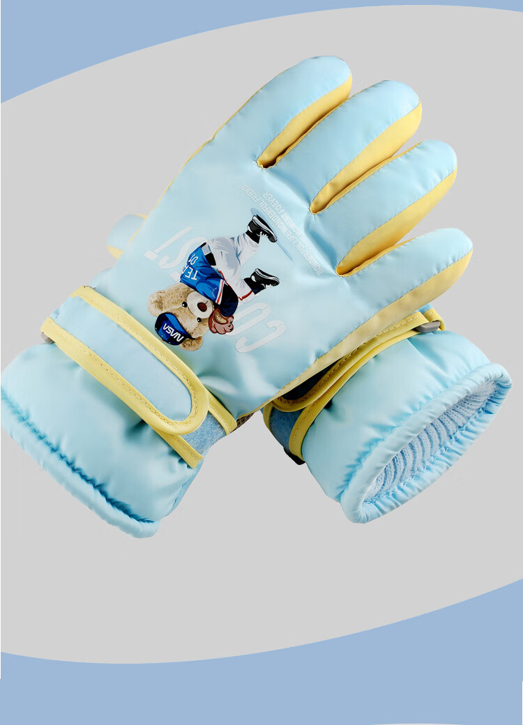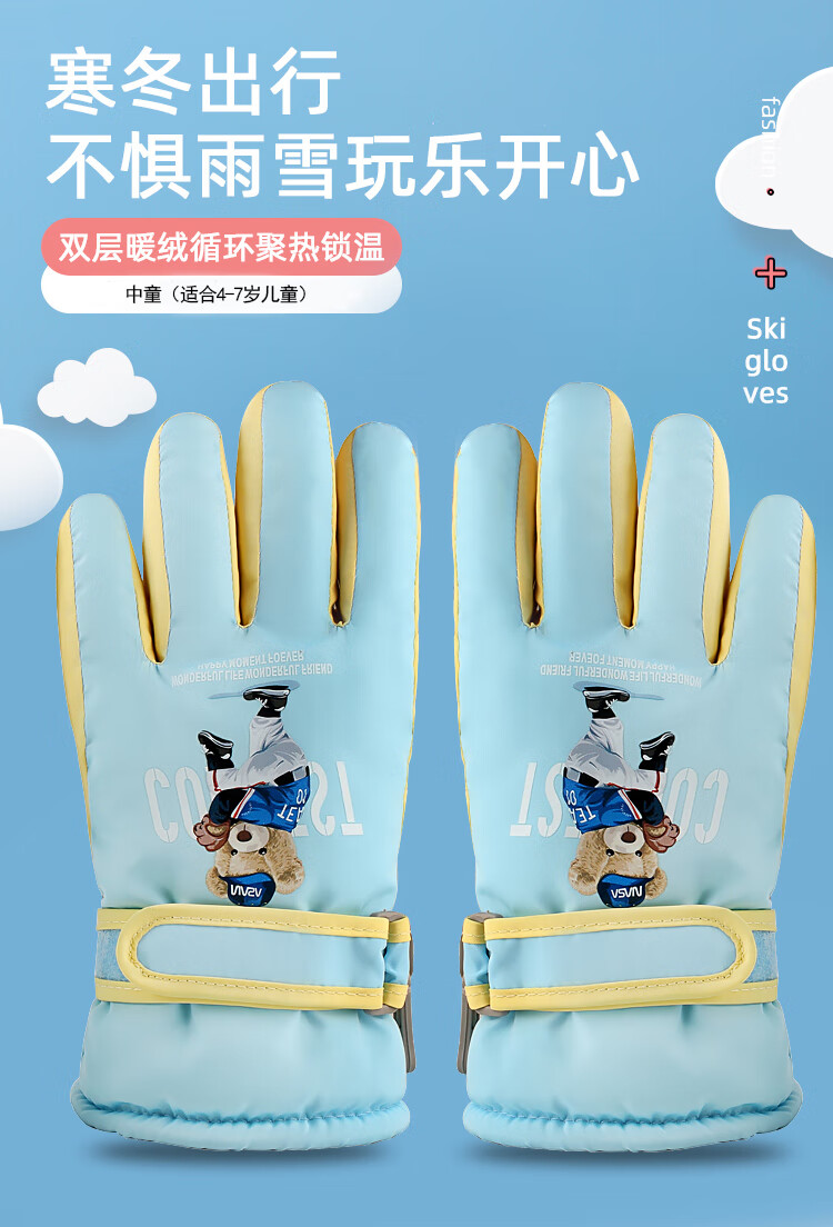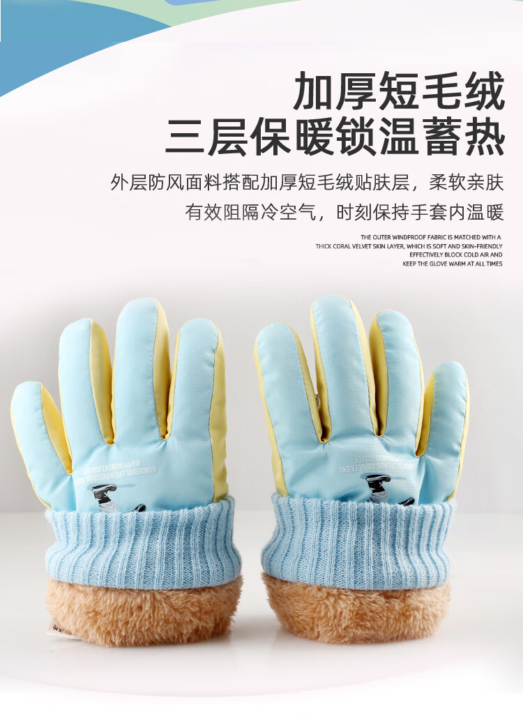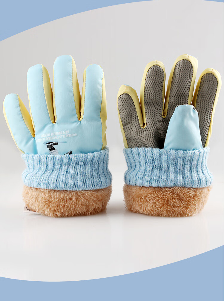 火炬人儿童手套防寒4到7岁冬季加绒手套卡通保暖滑雪手套玩雪手套3317蓝 玉桂蓝