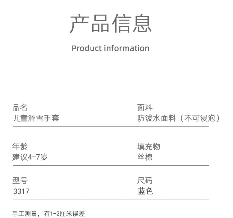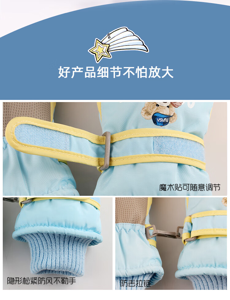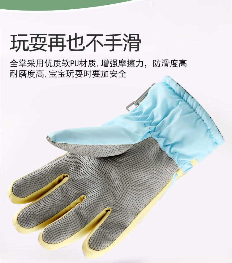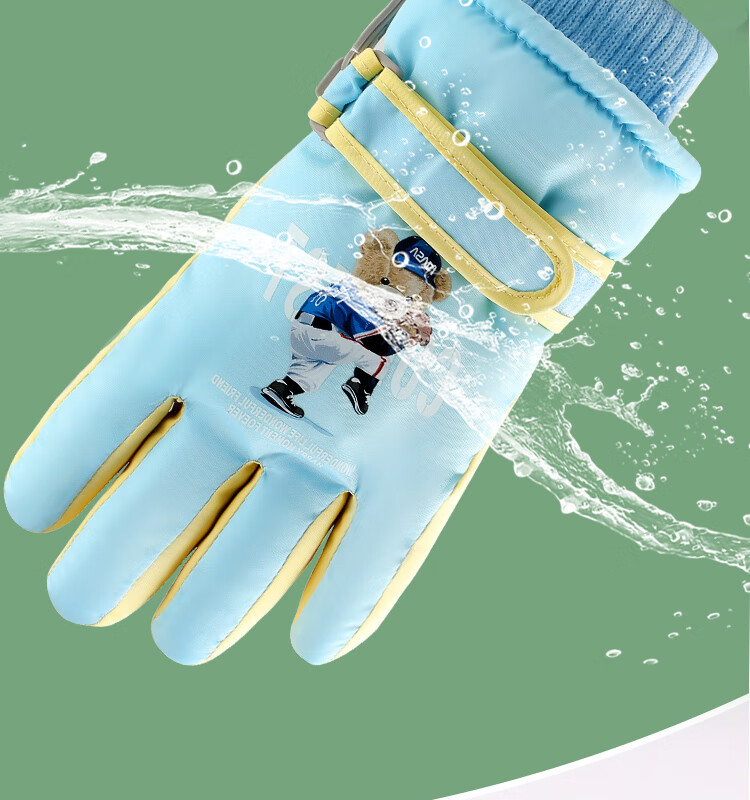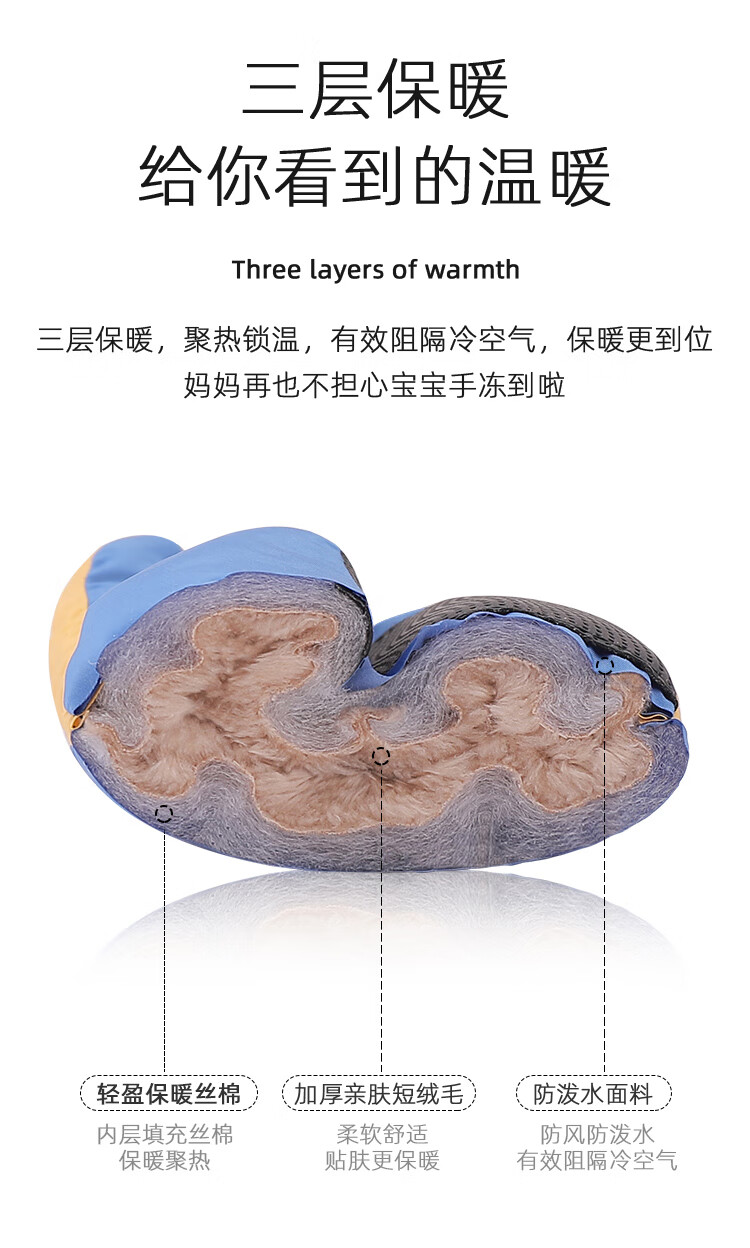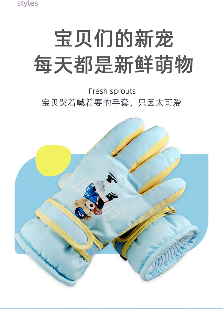 火炬人儿童手套防寒4到7岁冬季加绒手套卡通保暖滑雪手套玩雪手套3317蓝 玉桂蓝