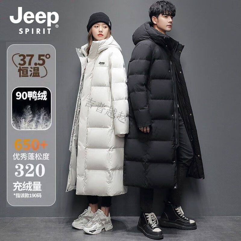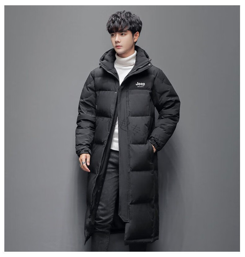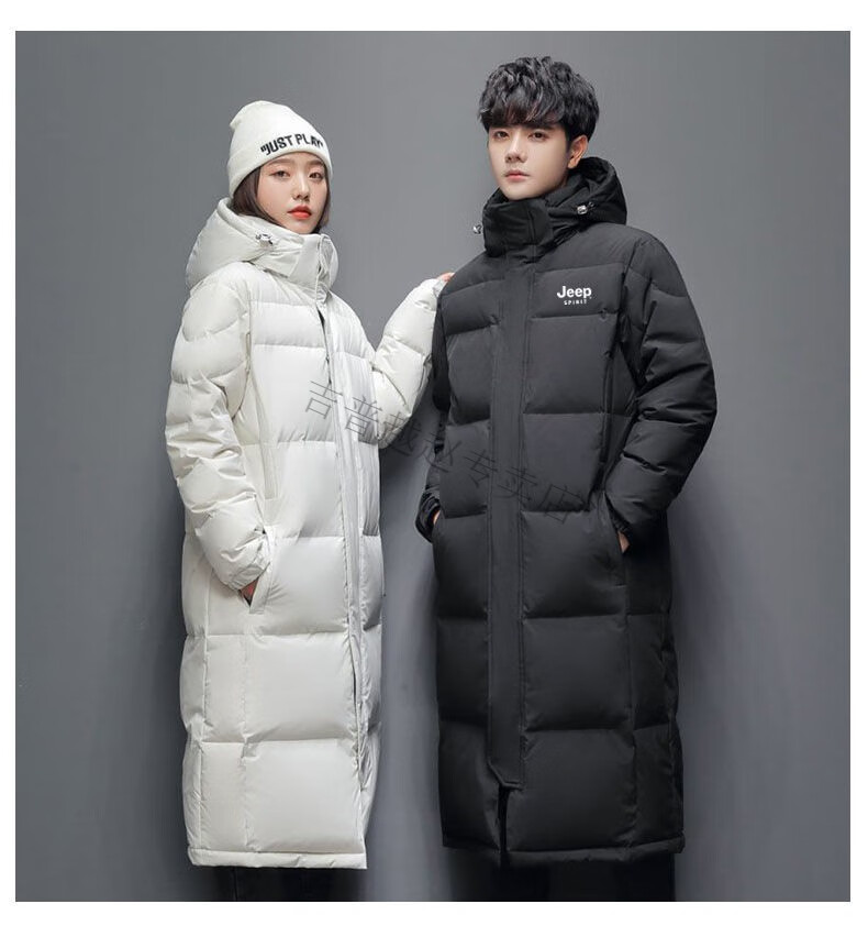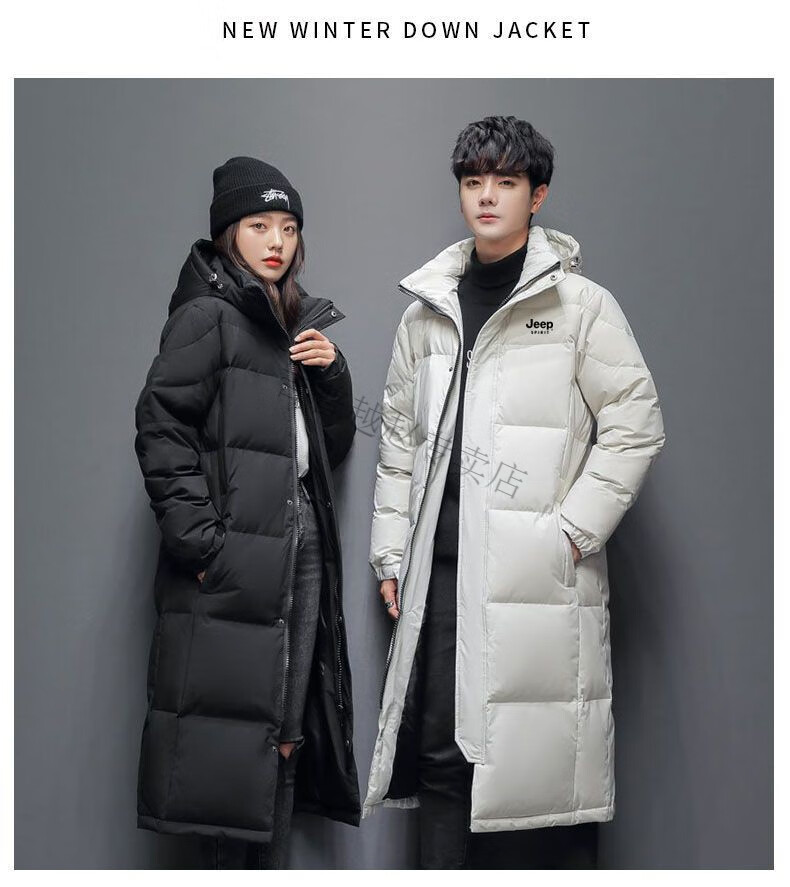 JEEP SPIRIT极寒零下40度新款中戏长款羽绒服男女情侣过膝外套白鸭绒保暖加厚 长款羽绒服-黑色【加绒保暖男女同款】 2XL 【130-150斤】