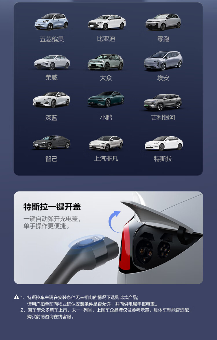 公牛充电桩家用新能源汽车交流适配于小米su7/yu7汽车特斯拉比亚迪问界蔚来 7KW尘星款 基础送装一体